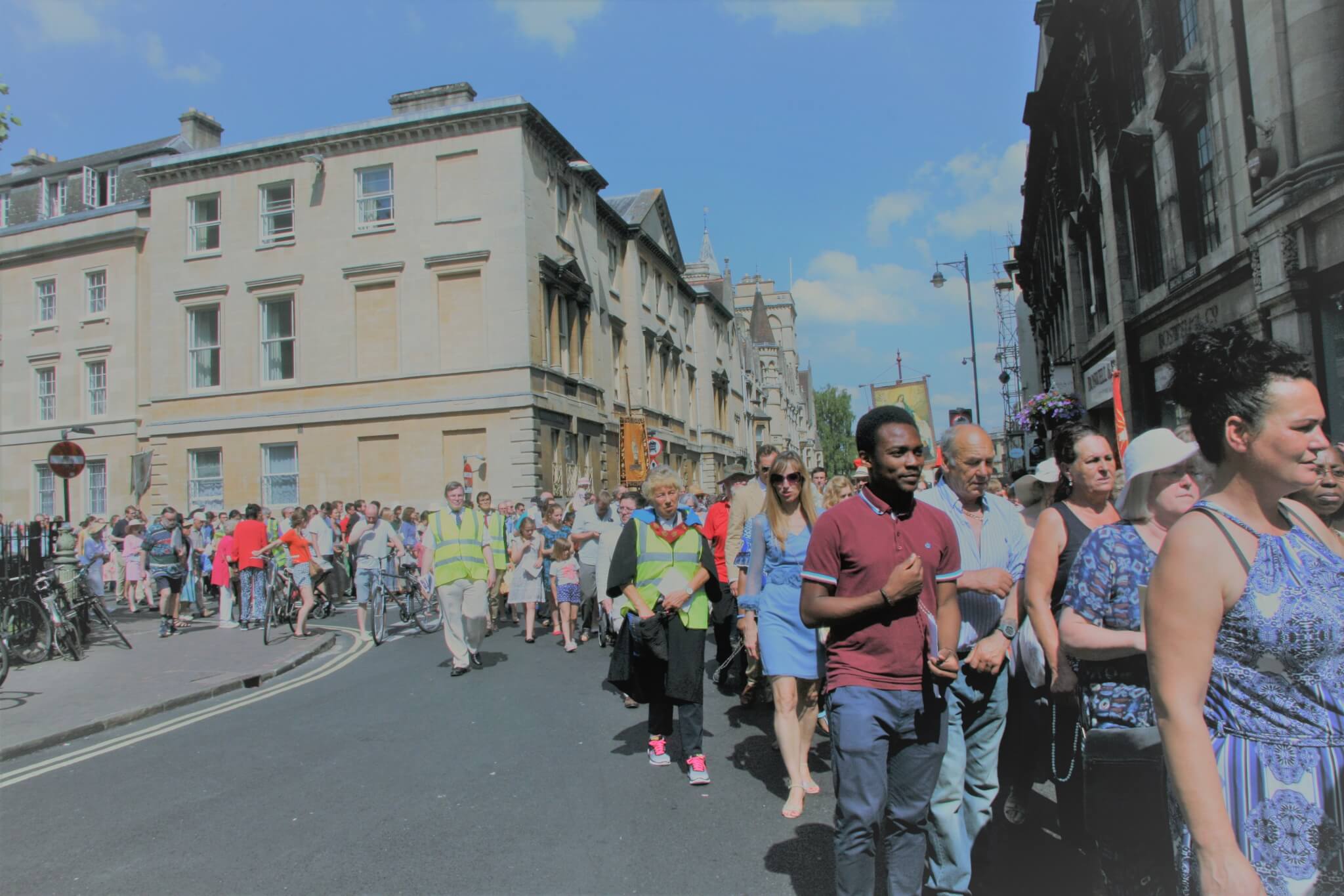 Many hundreds braved the sweltering heat yesterday to walk through the streets of Oxford with our Eucharistic Lord. For the first time we were able to close streets to traffic along the way, by the courtesy of Oxford City Council, and this made for a smooth procession and an excellent witness.